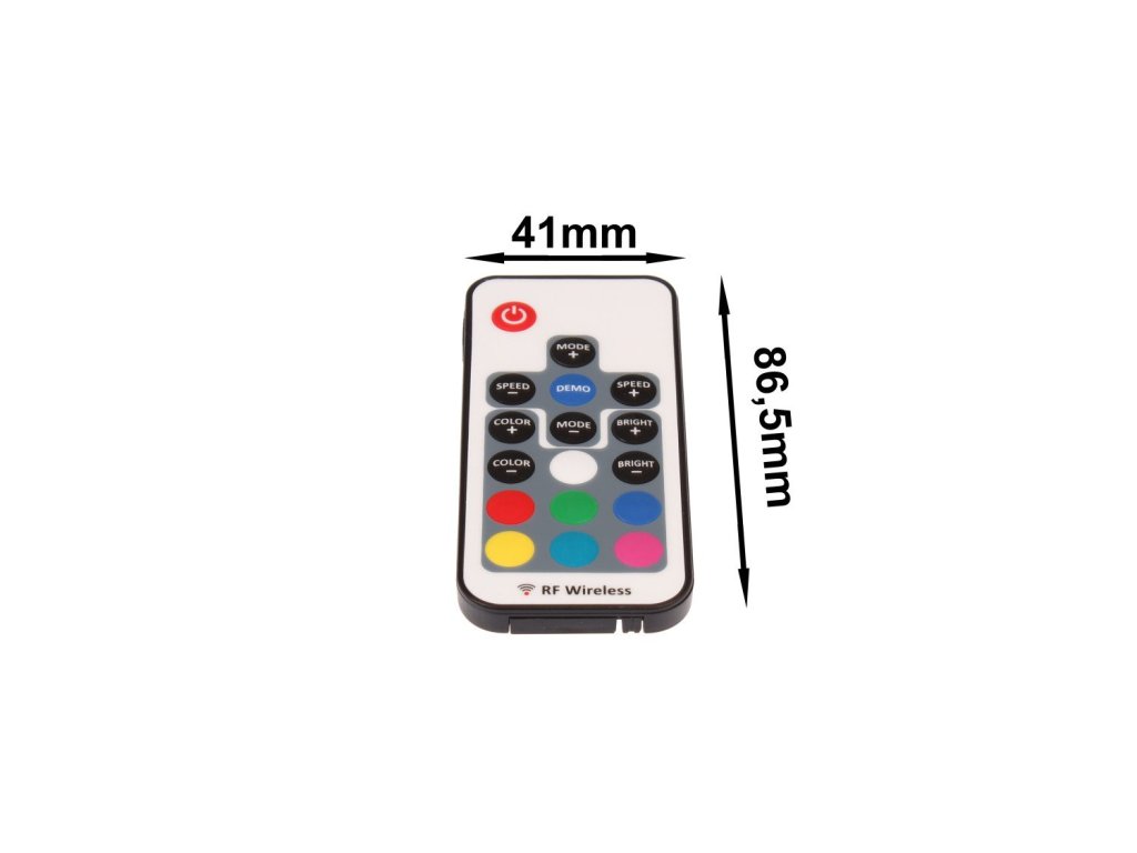 Mini ovladač RF RGB 17B (radiofrekvenční ovládání) umožňuje dálkově ovládat RGB LED osvětlení. Přijímač může být ukrytý, není nutná přímá viditelnost ovladače na přijímač.