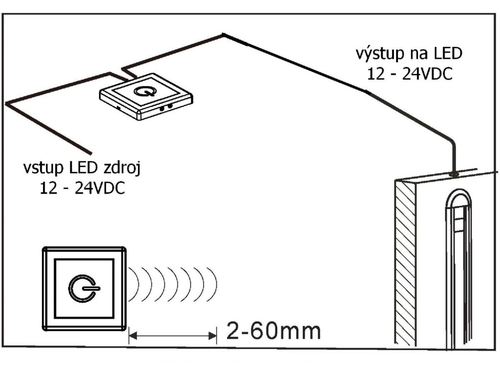 Zapnutí: Pokud se překážka (např. dvířka skříně) odstraní, senzor zapne napájení a připojené zařízení.