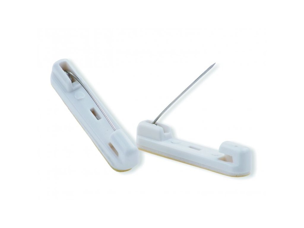 Brožový špendlík na průhledném, samolepícím plastu. Rozměry 40 x 8 x 10 mm.Doplňkové parametry